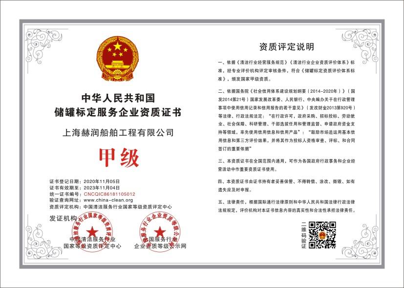 | 储罐标定资质 | 防爆电气资质 | 清罐资质 |